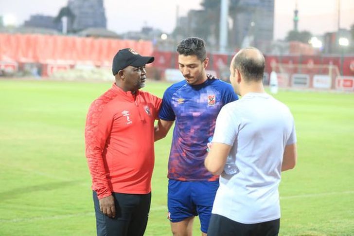 مران الأهلي| موسيماني يطمئن على محمد شريف.